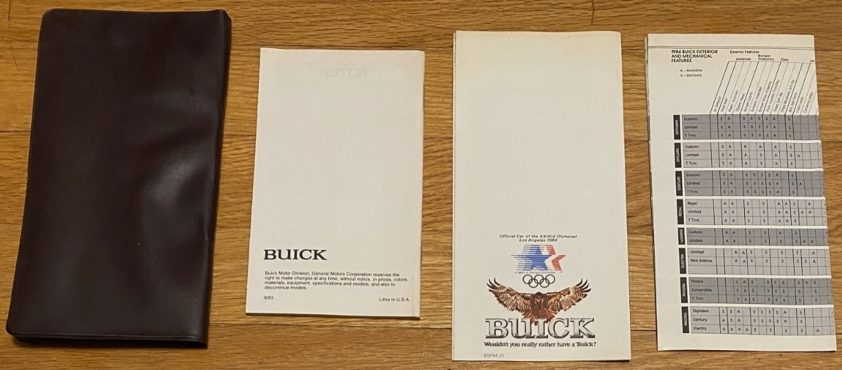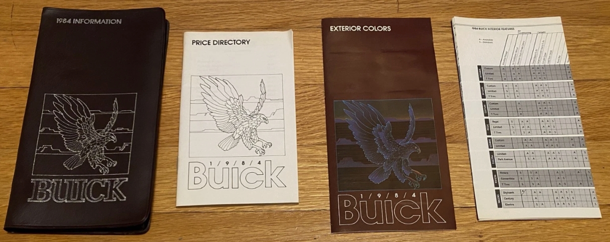 We recently saw this original 1984 Buick Information dealer sales sleeve containing a price directory, an exterior colors pamphlet and an interior/exterior features foldout pamphlet.