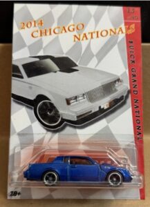 The 1:64 scale Buick Grand National diecast was created from the blue Kmart Hot Wheels car, with custom wheels and real riders. All inside a specially made card packaging for the event.