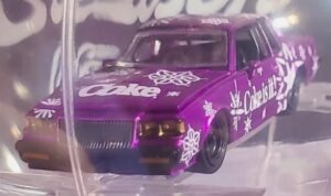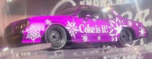 This years 1987 Buick Grand National car is purple in color, with “Coke is it!” emblazoned on the side. Various winter themes are on the roof and hood as well.