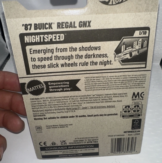 The packaging states: “Night Speed” & “’87 Buick Regal GNX.”