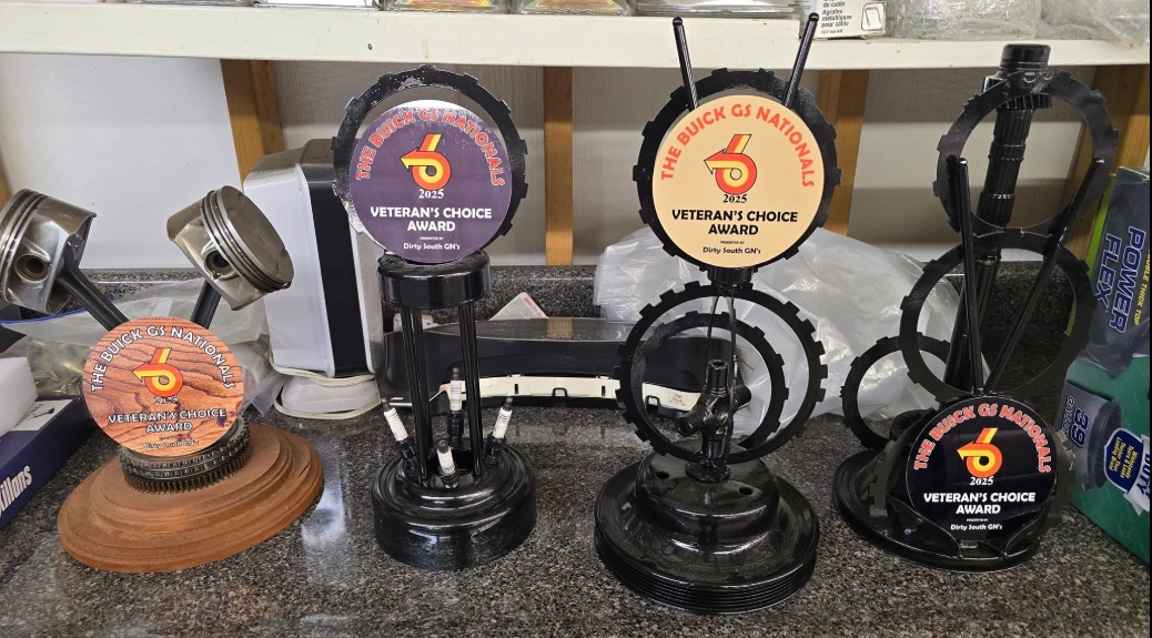 The Buick GS Nats (held in Bowling Green, KY, at the Beech Bend Raceway) has given out assorted car show awards (trophies) for various categories over the years. Sponsored by various organizations or vendors (like the “Veterans Choice” award from 2025, as shown below).