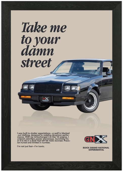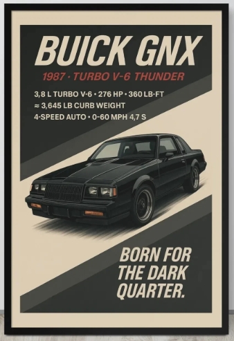 The king of the G-body Regals, the Buick GNX, has inspired some neat poster designs, any of which would make some cool wall art for your garage, office or mancave.