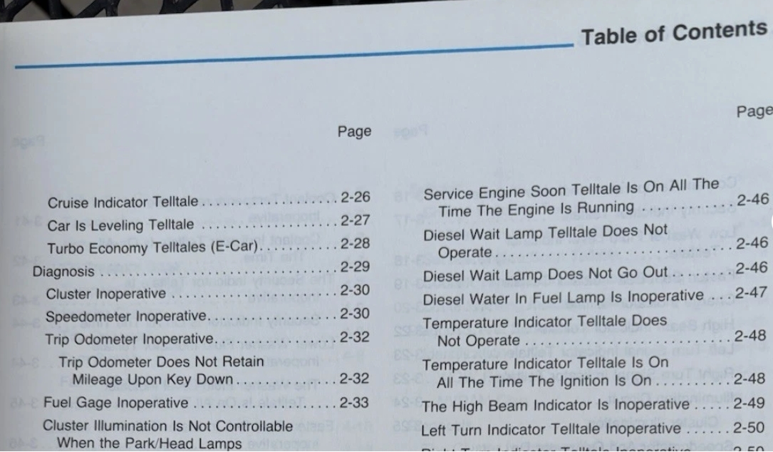This manual provided detailed information and instructions for digital dash setups (digital clusters), fuel gauge, SES light (Service Engine Soon), temperature, cruise control, tachometer, and all the rest of the electronic instrumentation and components found on the dashboard.