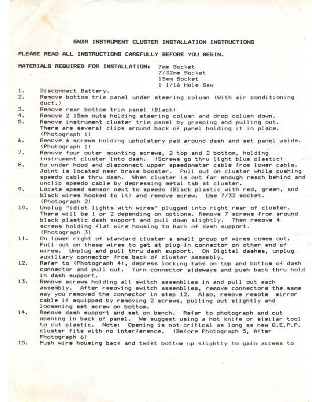 The below are the instruction sheets for modifying & installing this setup in a Buick Grand National or any of its turbo regal brethren.